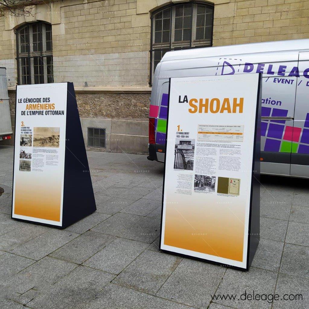 DELEAGE propose l’impression numérique de l’exposition, la fabrication des totems sur-mesure ainsi que l’installation sur site et la maintenance.