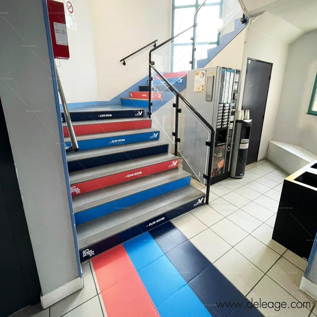 En montant les escaliers, les utilisateurs peuvent également découvrir une décoration originale et ludique : les contres-marches d’escaliers permettent de compter les calories dépensées. Grâce à un marquage spécifique, chaque contremarche affiche le nombre de calories brûlées en montant les marches. Cette idée ingénieuse incite les utilisateurs à prendre les escaliers plutôt que l’ascenseur, en les encourageant à pratiquer une activité physique régulière.