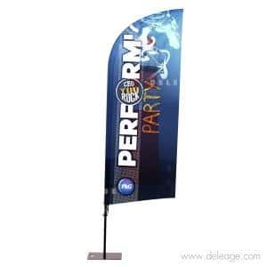 Le beach flag ou le kakémono sur potence pour candélabre est un drapeau de grandes dimensions disponible sous plusieurs formats qui véhicule le nom et le logo de votre marque, de votre entreprise ou les informations importantes de votre événement.