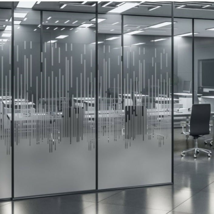 Traitement décoratif des vitres ou vitrage pour le bâtiment, l’industrie, les commerces ou les bureaux.